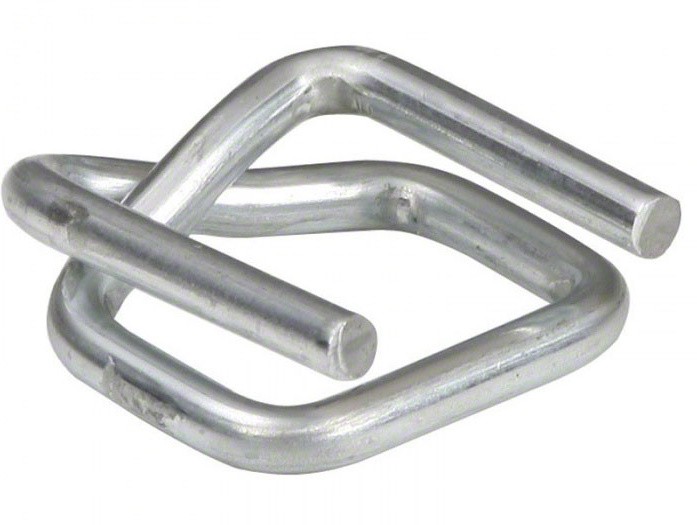 Drátěná samosvorná spona typu B, pro páskování textilní PES nebo PP páskou.