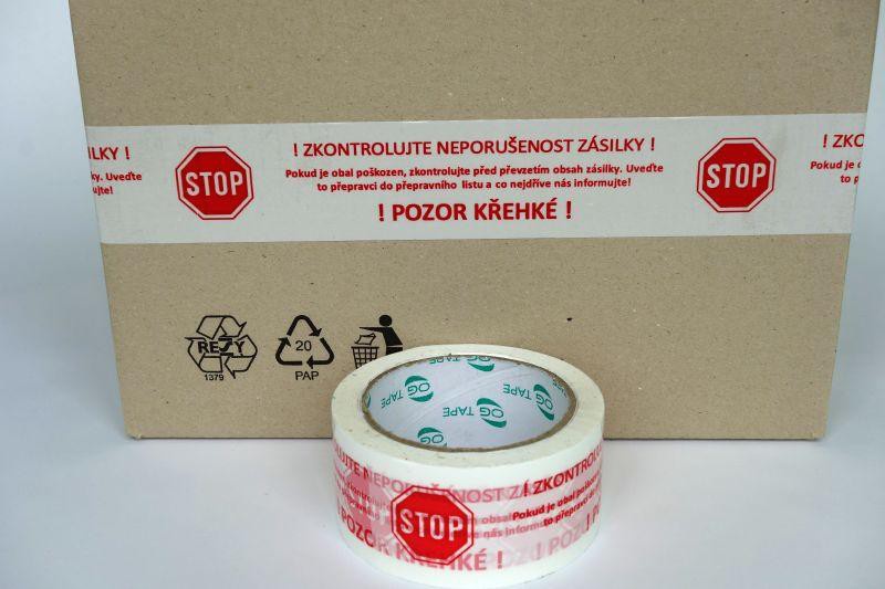 Popis Lepící páska 48 mm x 66 m s potiskem STOP Zkontrolujte neporušenost zásilky