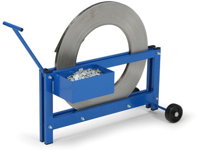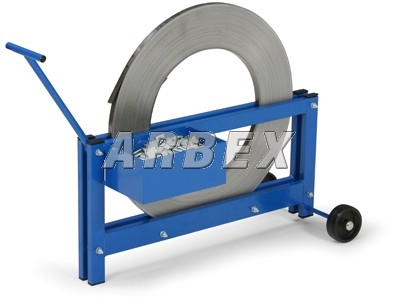 Pojízdný odvíječ pro ocelovou pásku. Snadno přemístitelný. Odvíjení ocelové pásky po ložiscích. Standardně pro šířku pásky do 20 mm. Plechová krabice pro spony a páskovačku. Lze použít do průměru 680 mm kotouče kovové pásky. Povrchová úprava je provedena práškovým vypalovacím lakem odstínu RAL 5005 - modrá. Dodává se bez ocelové pásky.