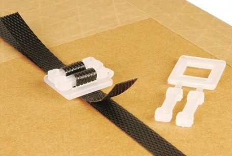 Plastová samosvorná vázací spona pro PP a PES pásky.
