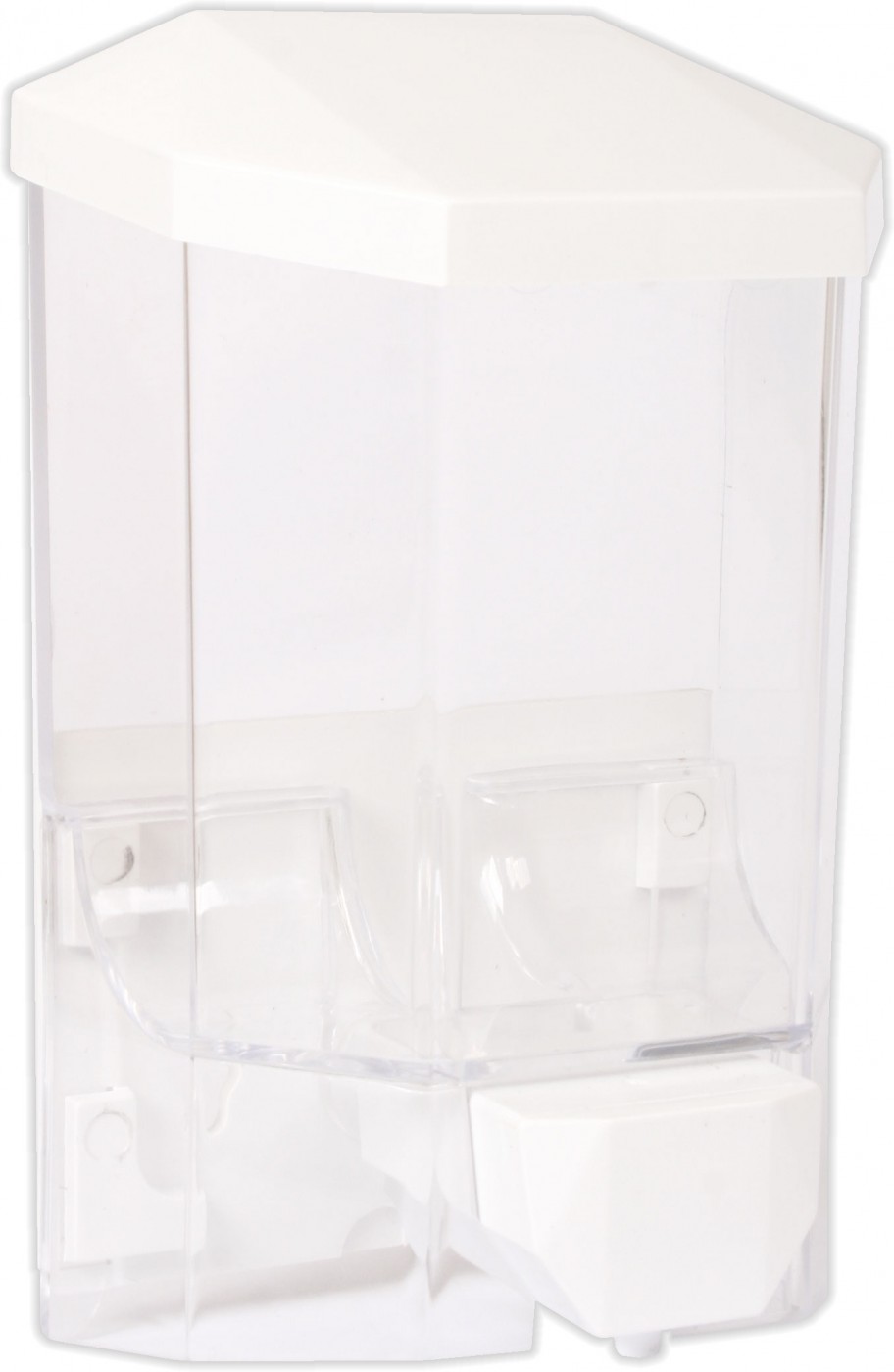 Nástěnný dávkovač na tekuté mýdlo, obsah zásobníku na dolévání je 500 ml. Je vyroben z průhledného plastu v kompaktním provedení. Lze montovat na vruty i samolepky. Rozměry (šxvxh) 100 x 160 x 60 mm