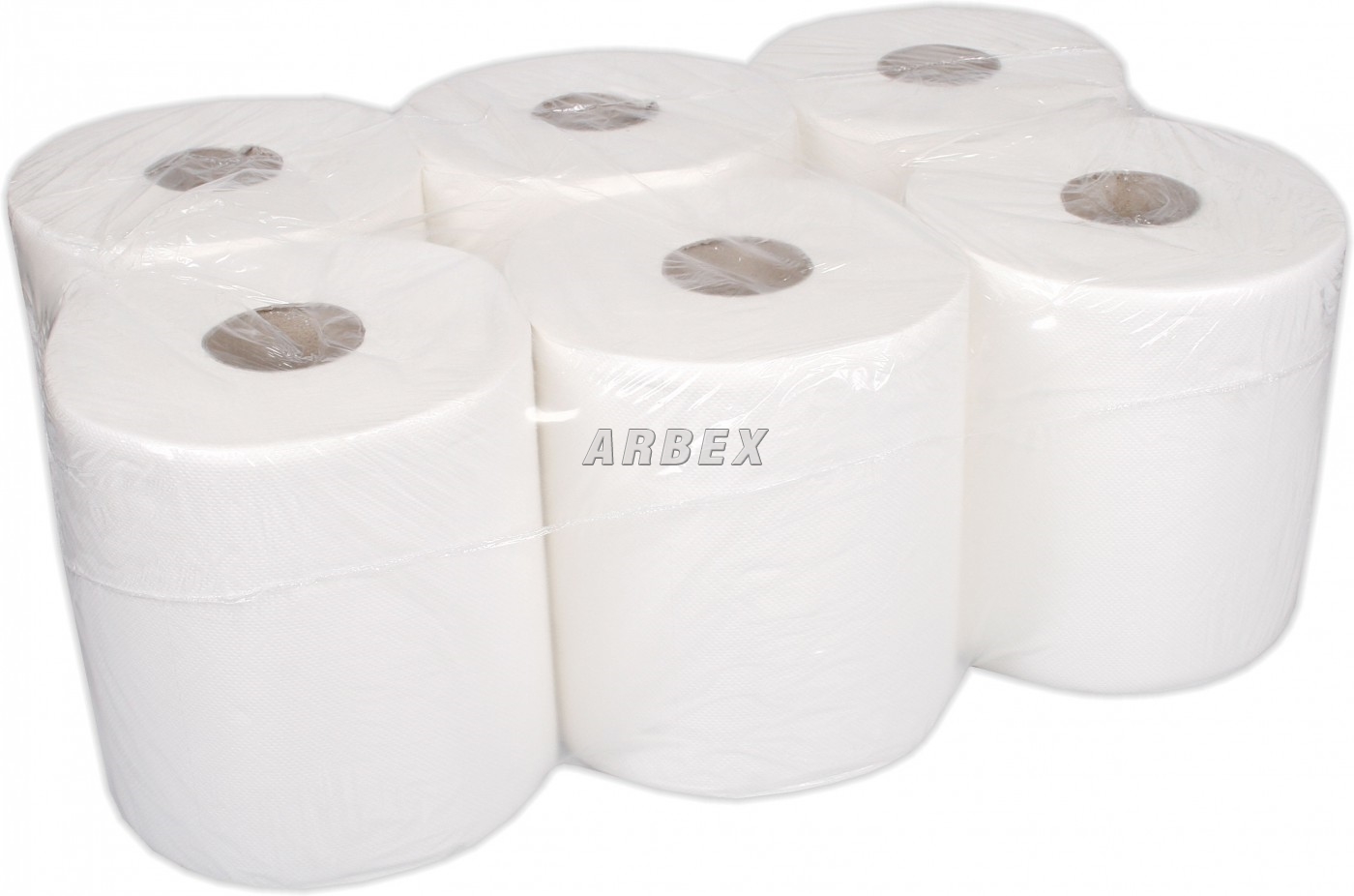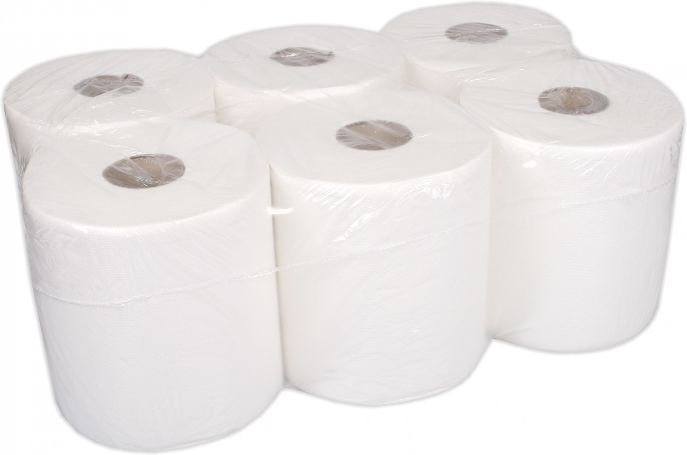 Bílé ručníky vyrobené z celulózy. 2-vrstvé. Šířka role 20 cm. Návin 110 m. Balení 6 ks. Cena za balení.