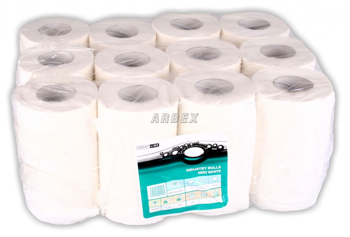 Bílé ručníky vyrobené z celulózy. 2-vrstvé. Šířka role 21 cm. Návin 50 m. Balení 12 ks.Cena za balení.
