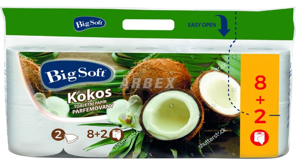Toaletní papír Big Soft, 2 vrstvý, 8+2 ks, kokos