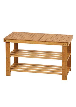 Botník v provedení bambus, má dvě odkládací police a plochu k sezení.