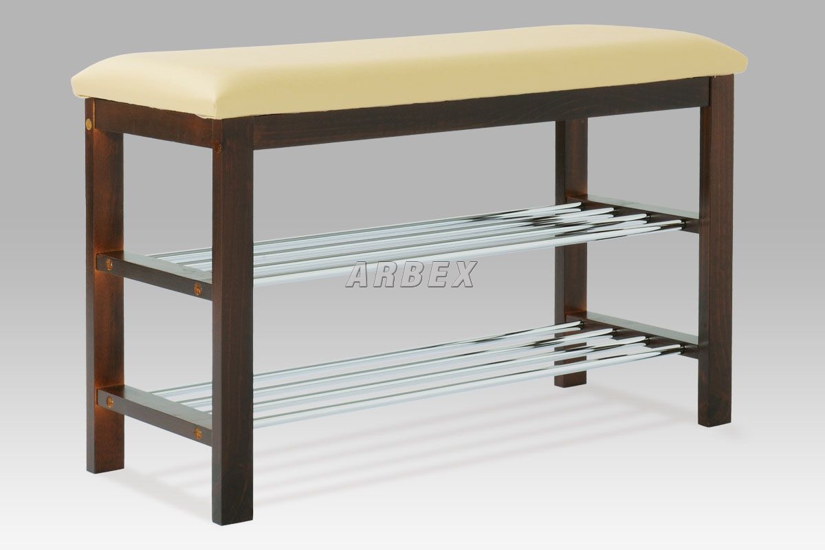 Botník - taburet,čalouněný se 2-policemi v provedení chrom / ořech