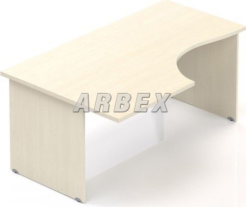 Kancelářský stůl v celodřevěném provedení, vhodný zejména pro kanceláře zaměstnanců, speciální rohový tvar, deska z laminované dřevotřísky o síle 28 mm, nastavitelné nožky