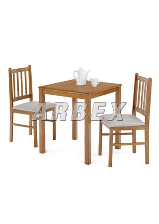 Jídelní set obsahuje stůl a 2 židle s polstrovanými sedáky.