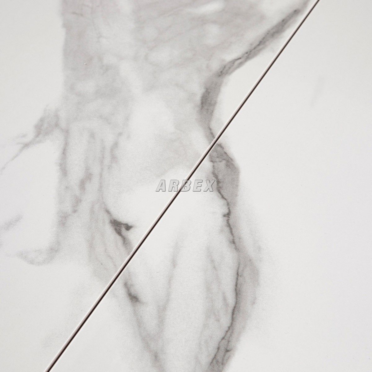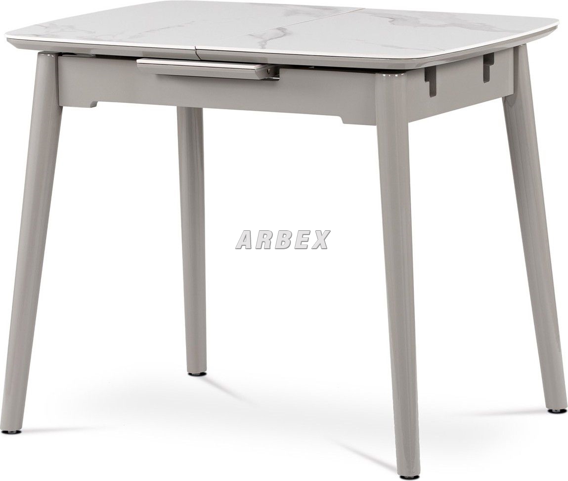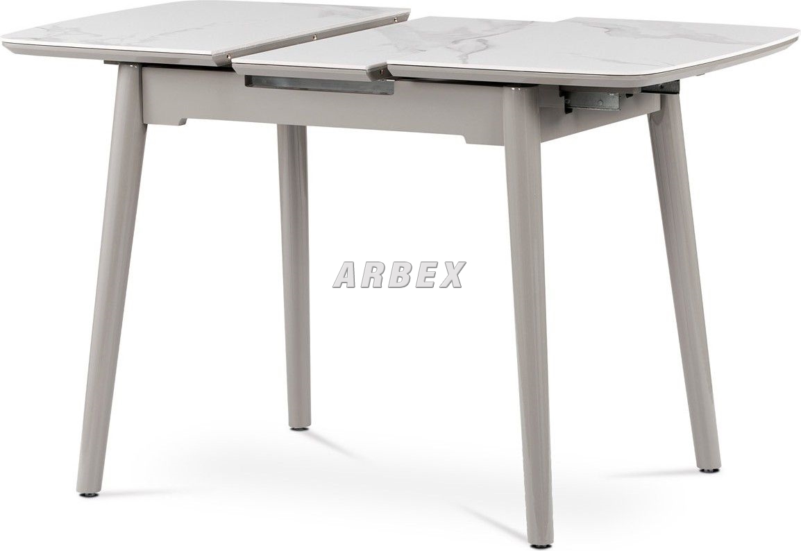 Popis Jídelní stůl 110+30x75 cm, keramická deska bílý mramor, masiv, šedý vysoký lesk