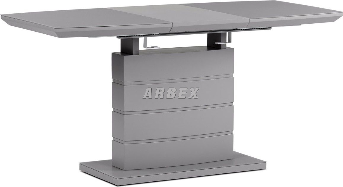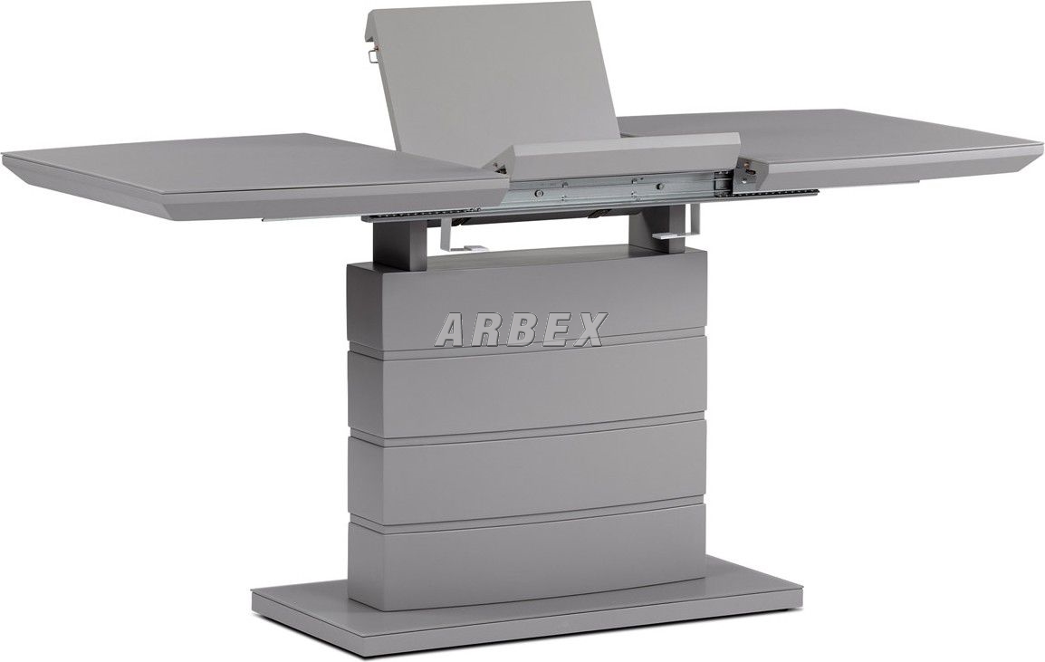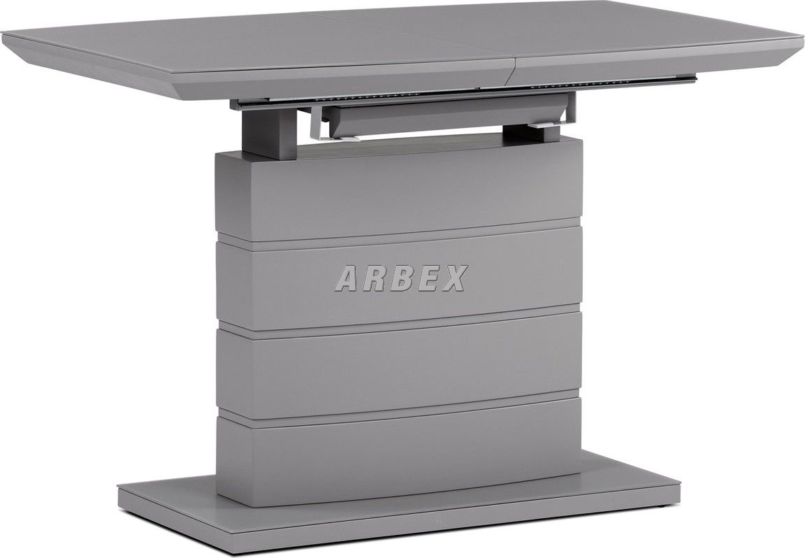 Designový jídelní rozkládací stůl o rozměru 110 + 40 x 70 cm. Vrchní stolová deska je tvrzeného skla tl. 4 mm v šedé barvě. Podkladová deska, centrální noha a díl rozkladu je z MDF v šedé matné barvě. Podesta je z také z MDF a krytá šedým sklem. Ze spodní části opatřená plastovými kluzáky, eleminujícími poškození povrchů tvrdých podlah. Mechanické součásti jsou kovové. Stůl jistě zaujme svým nadčasovým designem i skvělým zpracováním detailu a v neposlední řadě i barvou a stane se elegantním prvkem v moderních i klasicky laděných jídelnách, kuchyních a obývacích prostorách. Výška stolu je 76 cm. Ke stolu je možné umístit až 6 židlí.