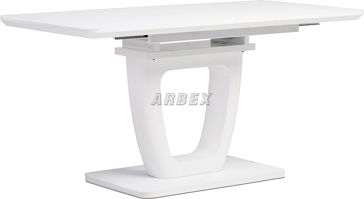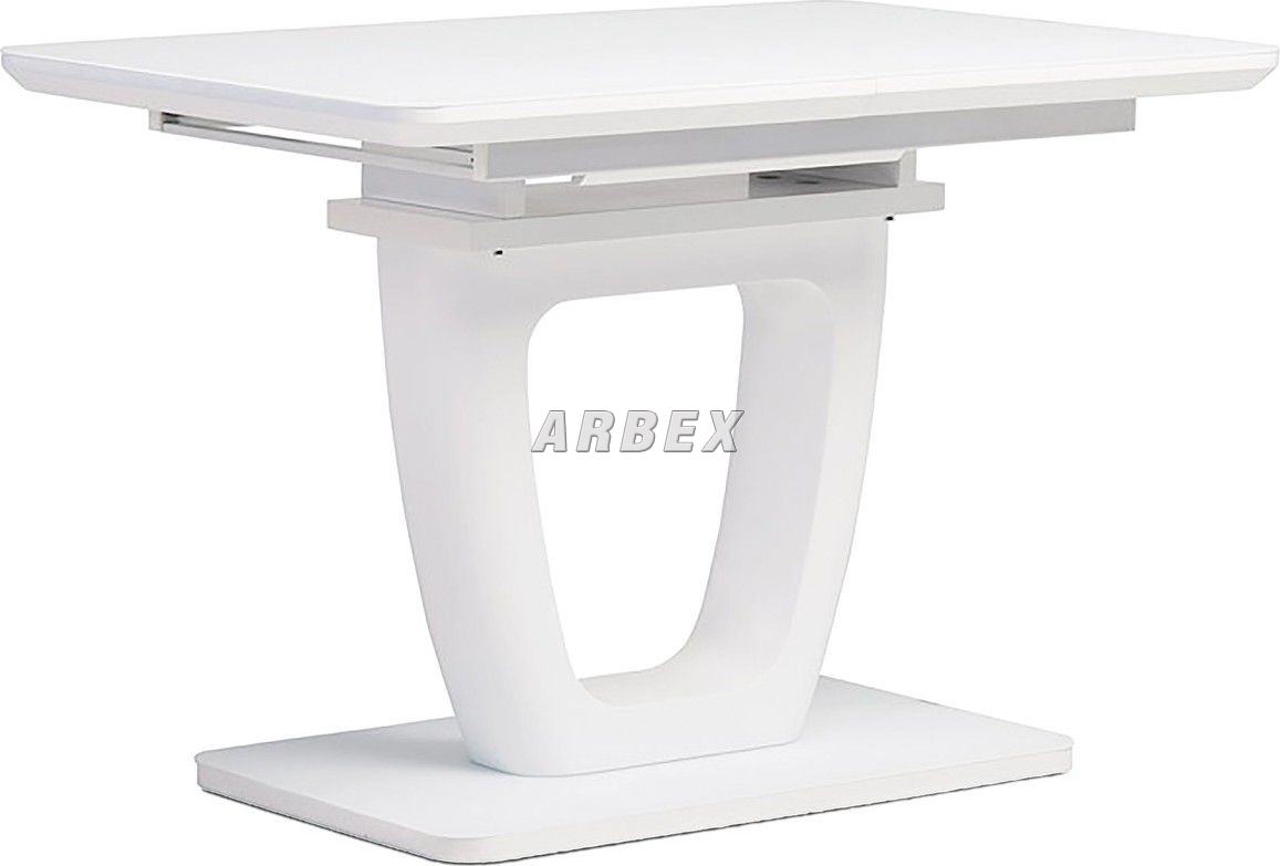 Designový jídelní rozkládací stůl o rozměru 110 + 40 x 75 cm. Vrchní stolová deska je tvrzeného skla tl. 4 mm v bílé barvě. Díl rozkladu je také krytý bílým sklem jako celá stolová deska, což nepatří ke standardům a řadí stůl do vyšší kategorie. Podkladová deska, centrální noha je z MDF je čistě bílá v matném provedení. Podesta je z také z MDF a krytá sklem v barvě. Ze spodní části opatřená plastovými kluzáky, eleminujícími poškození povrchů tvrdých podlah. Mechanické součásti jsou kovové. Stůl jistě zaujme svým nadčasovým designem i skvěloým zpracováním detailu a v neposlední řadě i barvou a stane se elegantním prvkem v moderních i klasicky laděných jídelnách, kuchyních a obývacích prostorách. Výška stolu je 76 cm. Ke stolu je možné umístit až 6 židlí.
