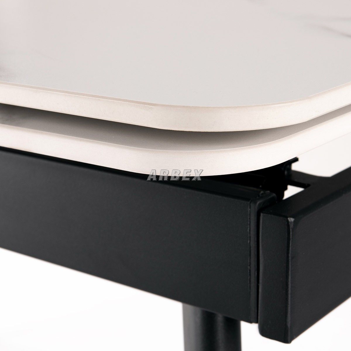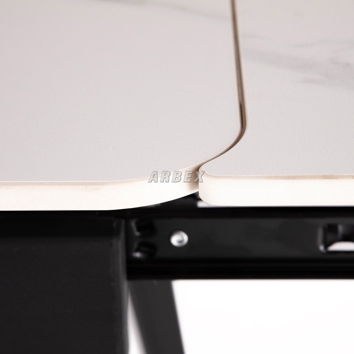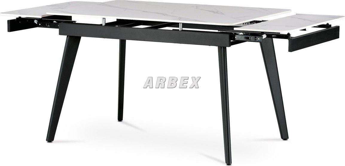 Designový jídelní rozkládací stůl o rozměru 120 + 30 + 30 x 80 cm v industriálním minimalistickém stylu. Vrchní stolová deska je tvrzené keramiky tl. 12 mm v matném dekoru "Italský sněhobílý mramor". Konstrukce stolu i nohy jsou celokovové s nástřikem práškového vypalovacího laku v matném černém odstínu. Plastové kluzáky na nohách eliminují možnost poškození povrchů tvrdých podlah. Rozkládání je výsuvné, díly o šíři 30 cm se vysouvají z obou kratších stran, mechanika je celokovová a pro usnadnění jak výsuvu, tak i zajištění, je opatřena pružinami a plynovými písty. Stůl zaujme jak svým minimalistickým designem i skvělým zpracováním detailu, ale také provedením desky se zakulacenými rohy a v neposlední řadě také dekorem vrchní desky, imitující jeden z nejkvalitnějších a nejžádanějších mramorů na světě. Jistě se stane se velmi elegantním a nepřehlédnutelným prvkem v moderních - industriálních, ale i klasicky laděných jídelnách, kuchyních a obývacích prostorách. Výška stolu je 76 cm. Ke stolu je možné umístit až 8 židlí. Bílý mramor (Carrarský mramor) je jedním z nejznámějších mramorů na světě, pochází z italského města Carrara v regionu Toskánska, kde se těží už od konce římské republiky. Jedná se o čistě bílý mramor s jemným šedým žilkováním. Použití je velmi široké, od sochařství (Michelangelo, Bernini, Donatello) až po stavebnictví současné i historické.