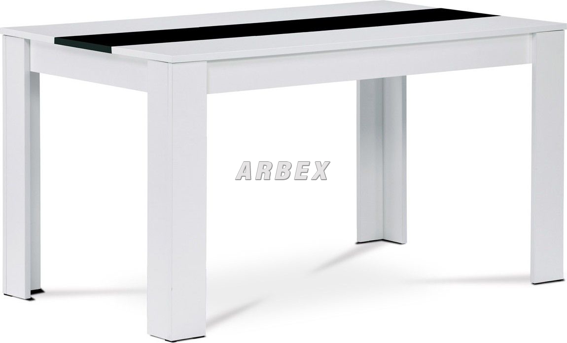 Jídelní stůl v minimalistickém designu a provedení. Je vyroben z kvalitních a pevných MDF dílů v povrchové úpravě bílé lamino s plastickým dekorem dřeva. Elegantní vzhled ještě podtrhne středový pruh v černé matné barvě (lamino). Použitý materiál zajišťuje výbornou pevnost i stabilitu celého stolu. Nohy jsou opatřeny černými plastovými kluzáky, zamezujícími riziko poškození podlahy. Lamino je velmi odolné, výborně se udržuje a čistí. Díky svému elegantnímu designu stůl zapadne téměř do každého interiéru a dodá mu styl. Ke stolu se pohodlně usadí až 6 lidí. Dodáváno v demontu.
