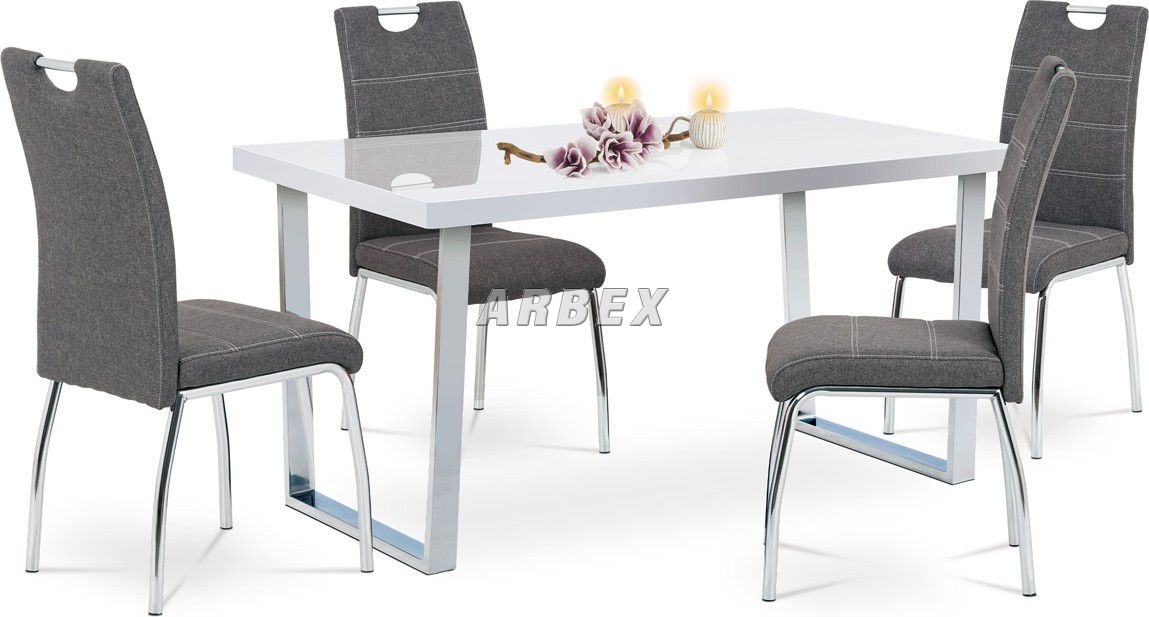 Moderní vzhled tomuto jídelnímu stolu určitě nechybí. Díky netradičním nohám z chromu nezůstane stůl bez povšimnutí žádné návštěvy. Jídelní stůl se hodí do všech interiérů. Deska stolu je v bílém lesku o tloušťce 5cm, podnož je chromová. Tloušťka nohy je 25 mm, šířka 75 mm.