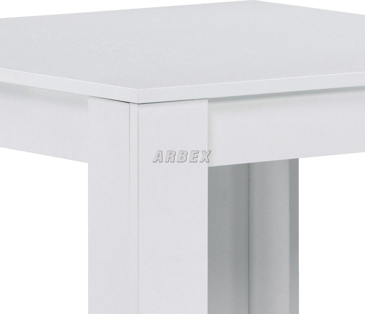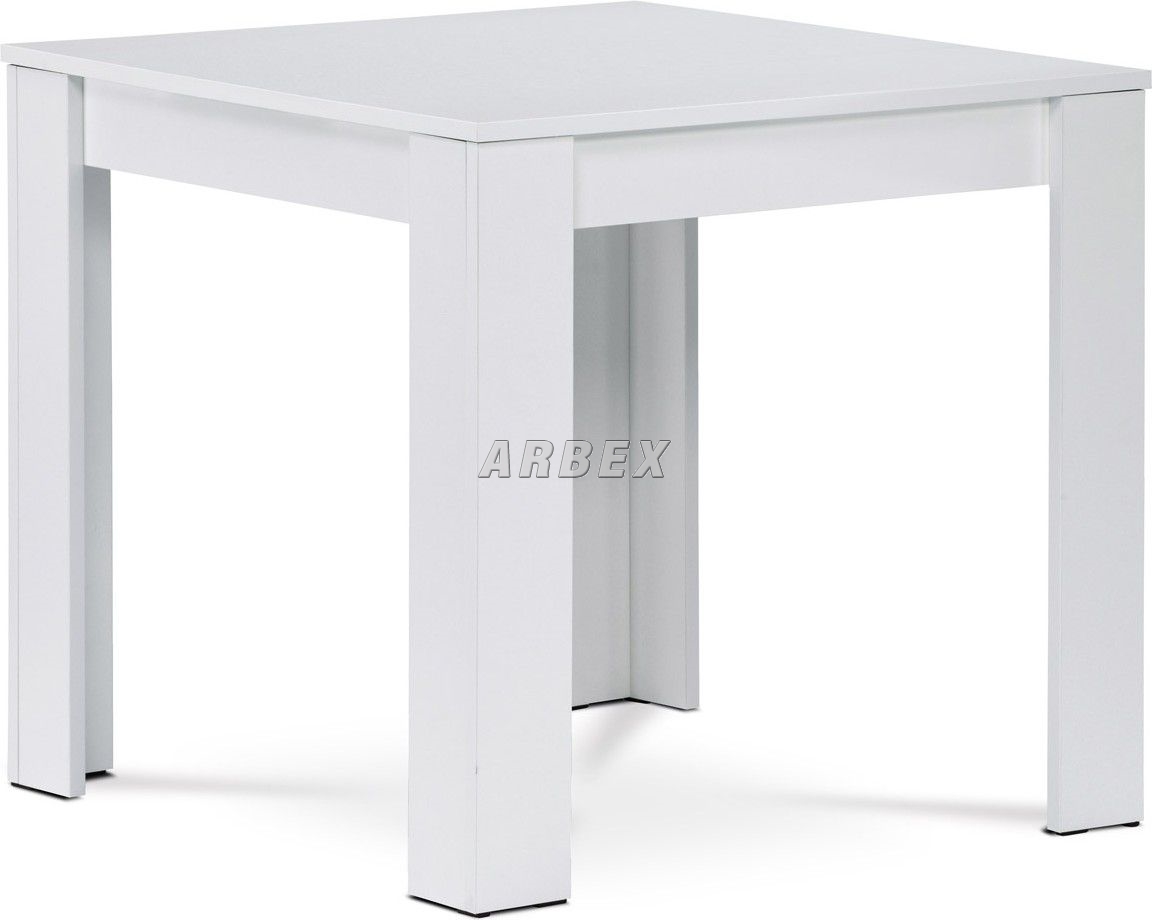Jídelní stůl v minimalistickém designu a provedení. Je vyroben z kvalitních a pevných MDF dílů v povrchové úpravě bílé lamino s 3D dekorem dřeva. Použitý materiál zajišťuje výbornou pevnost i stabilitu celého stolu. Nohy jsou opatřeny plastovými kluzáky, zamezujícími riziko poškození podlahy. Lamino je velmi odolné, výborně se udržuje a čistí. Díky svému elegantnímu designu stůl zapadne téměř do každého interiéru a dodá mu styl. Ke stolu se pohodlně usadí 4 lidé. Dodáváno v demontu.