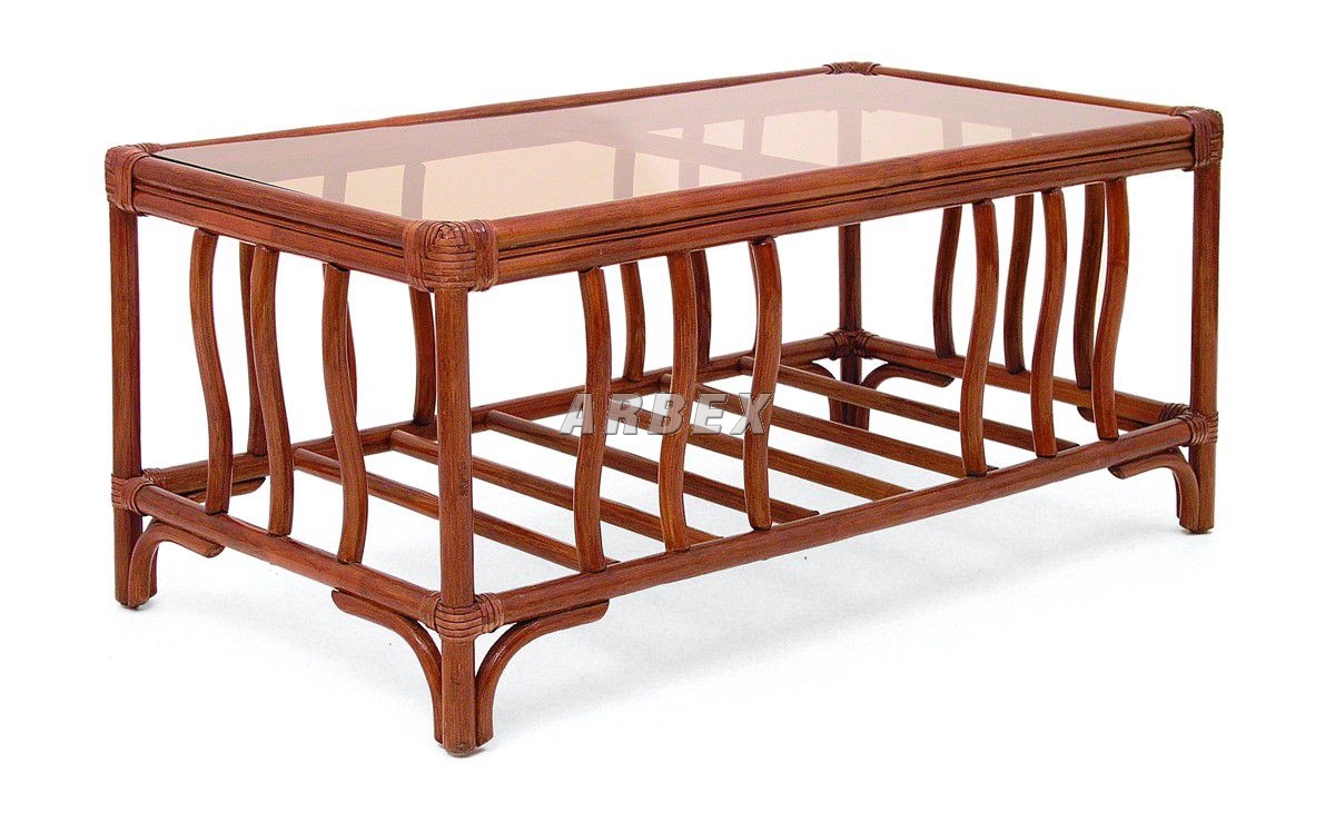 Konferenční stolek z ratanu tmavé medové barvy, bez skla.