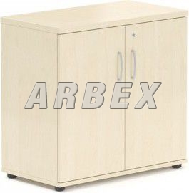 Nízká kancelářská skříň z laminované dřevotřísky, nastavitelné nohy, vybavena 1 policí, nosnost 25 kg, 3 typy dezénů