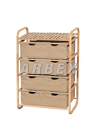 Regál v provedení bambus se 4-šuplíky v hnědé barvě.
