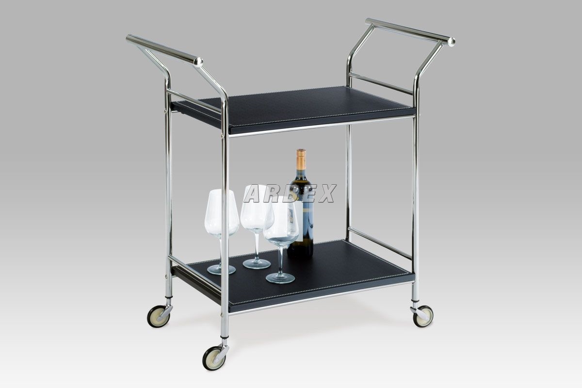 Pojízdný servírovací stolek v provedení chrom/mdf a černá koženka.