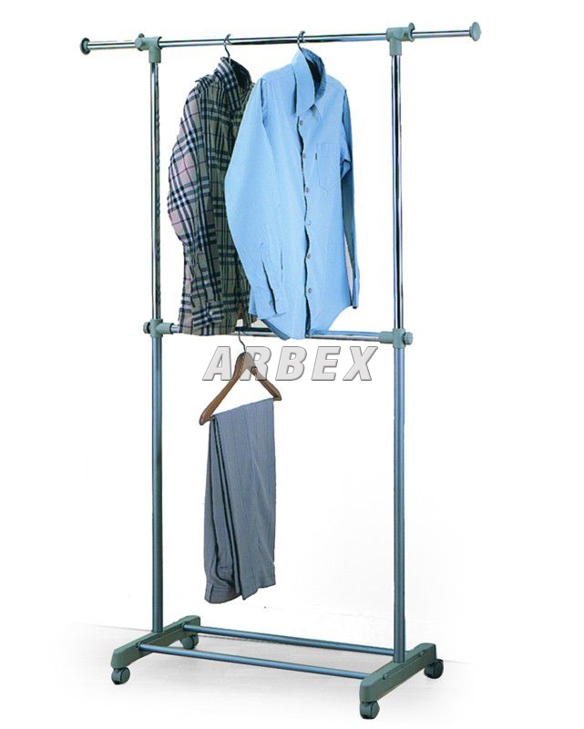 Stojan na šaty s výsuvným a pevným ramenem na kolečkách v barvě: chrom/šedá.