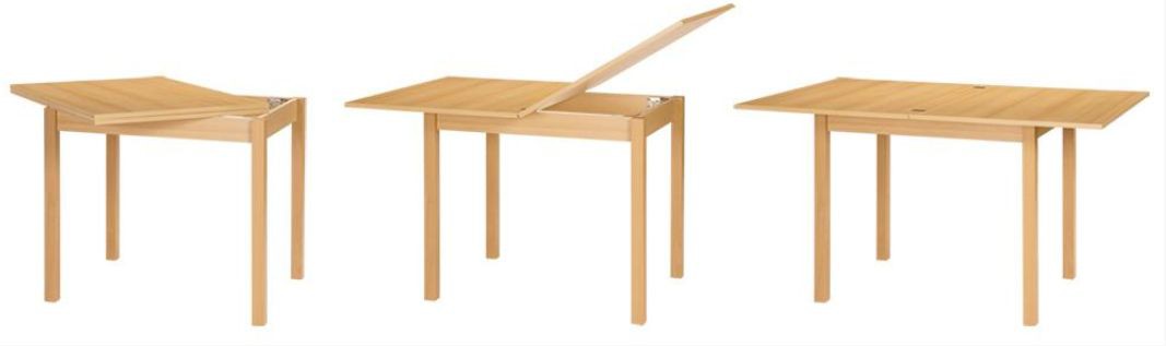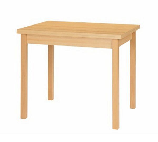 Rozkládací jídelní stůl v odstínech barvy dřeva dub sonoma. Deska lamino, hrana ABS, nohy masiv.