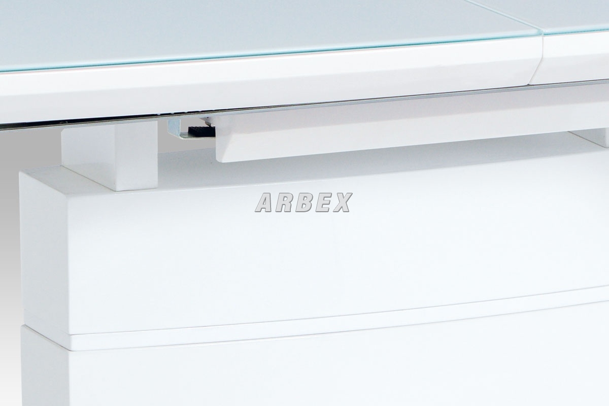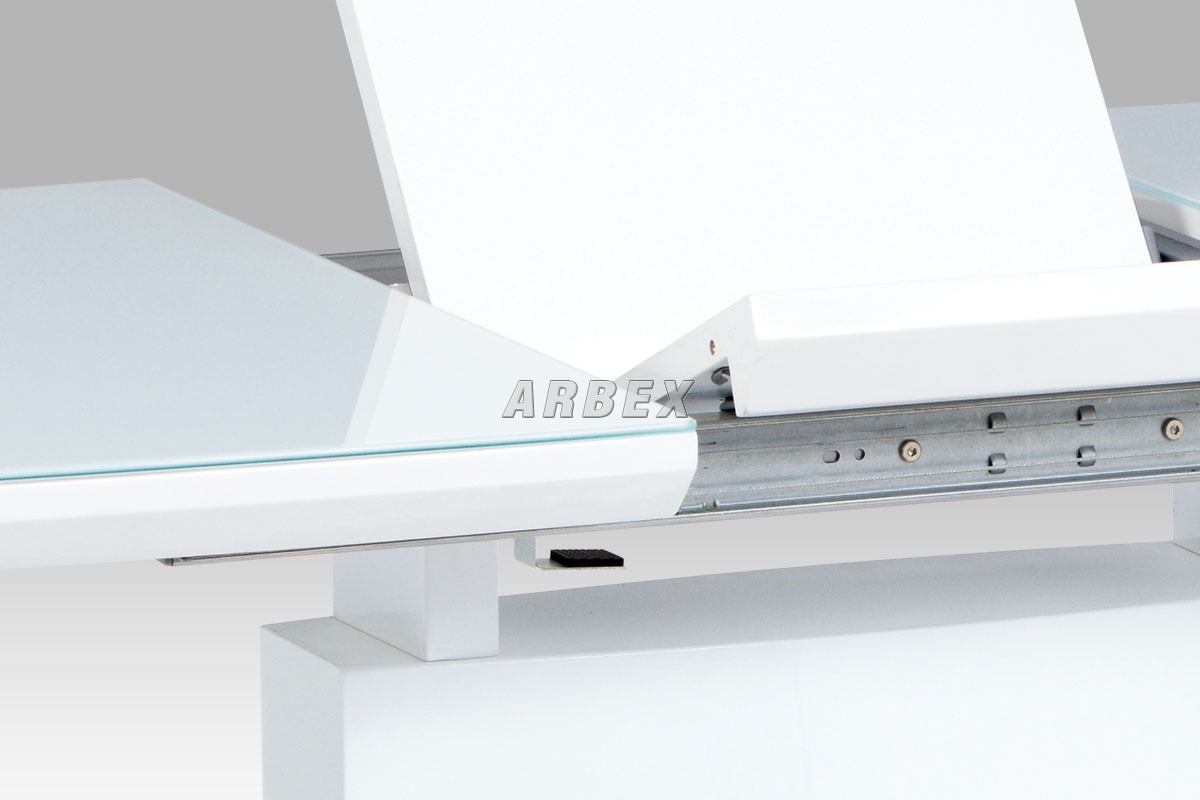 vrchní deska je z bílého skla a má tloušťku 5 cm