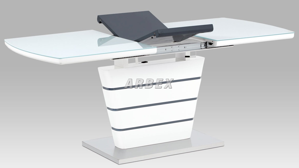 stůl lze rozložit z rozměru 140 cm na 180 cm (přídavná deska je z MDF v šedém vysokém lesku a je skladná přímo uvnitř stolu)