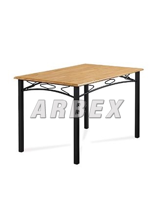 Podnož stolu je kovová, ošetřena černým lakem,se zajímavým zdobením pod stolovou deskou.