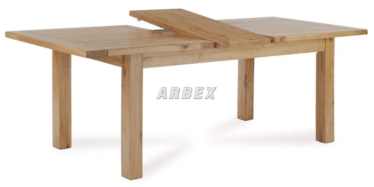 Stůl je obdélníkového tvaru, je zhotoven z dřevěného masivu barvy moření dub.