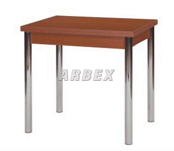 Rozkládací jídelní stůl v kombinaci chrom a lamino. Deska 2 x 18 mm, hrana ABS, nohy průměr 5 cm.