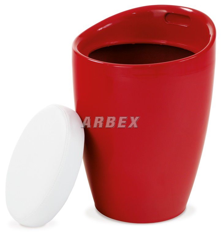 Taburet s úložným prostorem v provedení plast červený / sedák bílá PU