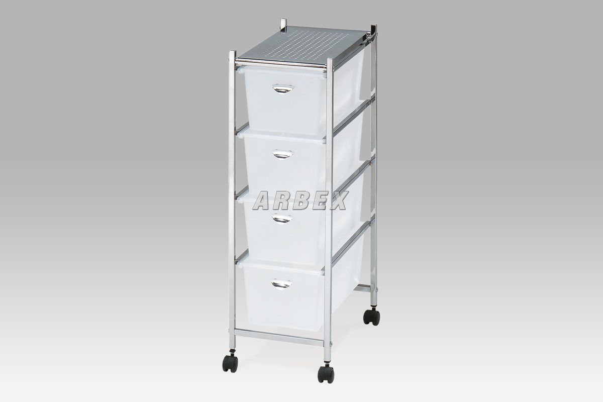 4- zásuvkový pojízdný, úložný regál v provedení chrom/plast .