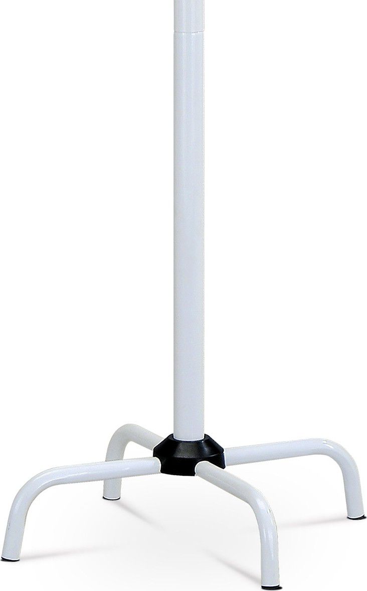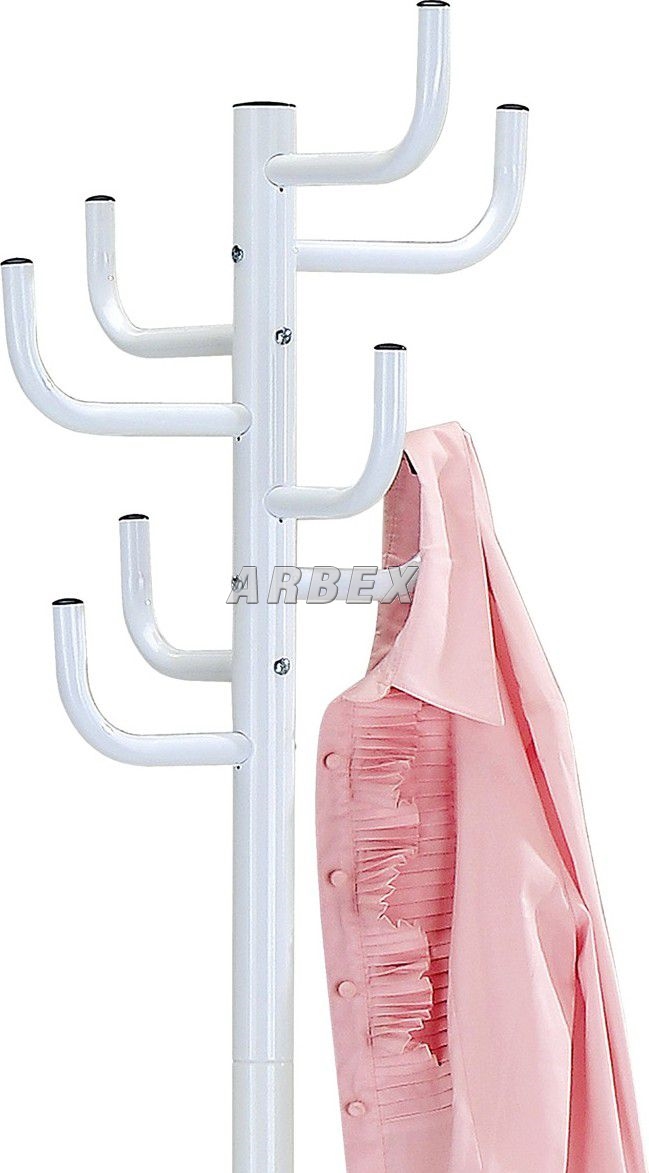 Kovový, volně stojící věšák ve futuristickém designu s velkými závěsnými háčky v různých výškových úrovních. Háčky jsou zakončeny zaoblenými plastovými záslepkami z černého plastu. Stabilní a lehká konstrukce je z kovových trubek v bílém lesklém práškovém laku a zakončena čtyřmi stabilními kovovými nohami z ohnutých trubek. Trubky jsou ukončeny plastovými kluzáky, zamezující poškození podlahy. Dodáván je v demontovaném stavu. Výška je 182 cm, celková nosnost je do 10 kg rovnoměrně rozprostřené zátěže. Díky své hmotnosti a provedení je lehce přenosný. Jedná se o velmi funkční doplněk interiéru, v každém si najde zasloužené místo a uplatnění.