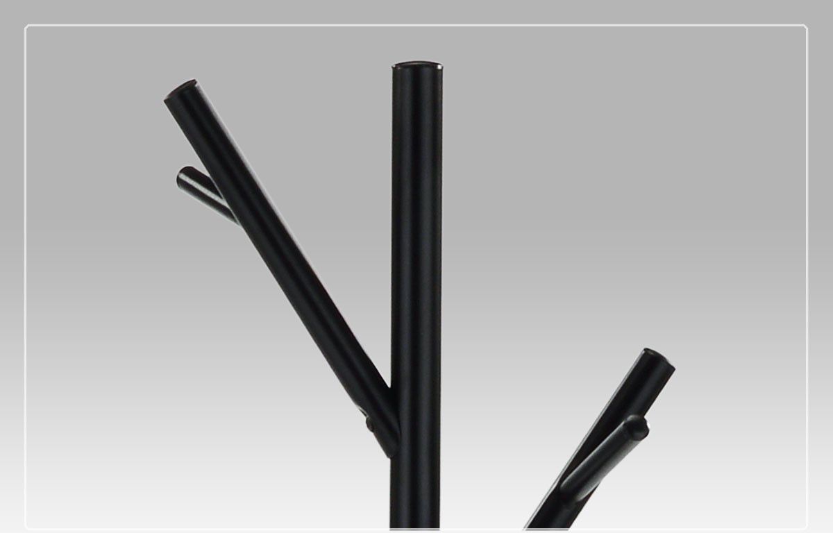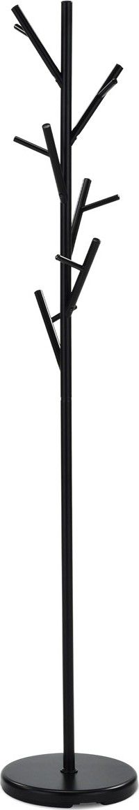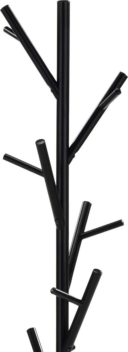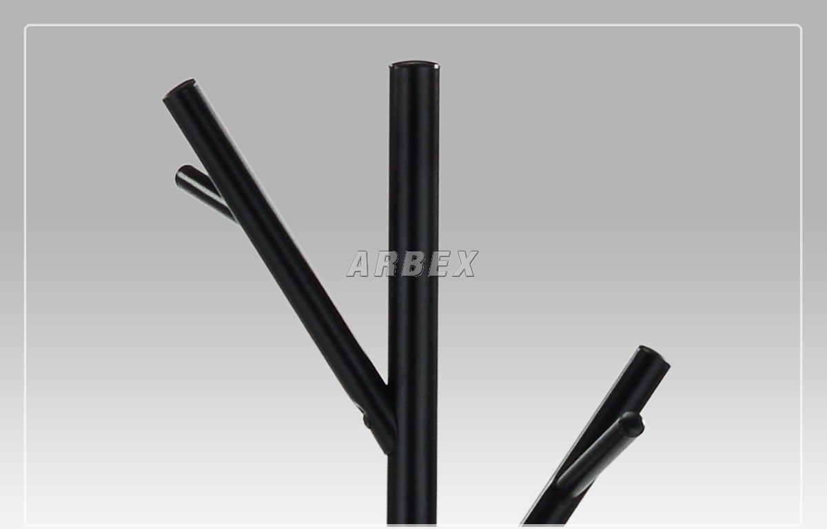 Kovový, volně stojící věšák v minimalistickém designu. Tvarem připomíná stylizovaný kmen stromu s rozvětvenými větvemi. Stabilní a lehká konstrukce je z kovových trubek v černém matném laku a je zakončena kovovou podestou se zátěží v plastovém pouzdře. Závěsné háčky tvoří větve a jejich rozvětvení a jsou zakončeny zaoblenými plastovými záslepkami v černé barvě. Dodáván je v demontovaném stavu, celková nosnost je 10 kg rovnoměrně rozprostřené zátěže. Díky své hmotnosti a provedení je lehce přenosný. Jedná se originální doplněk interiéru, v každém si najde zasloužené a funkční místo a uplatnění.