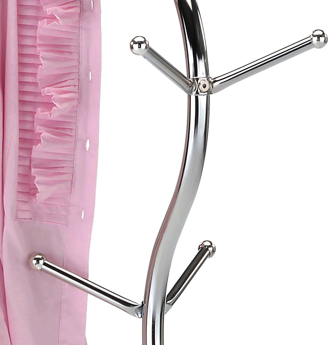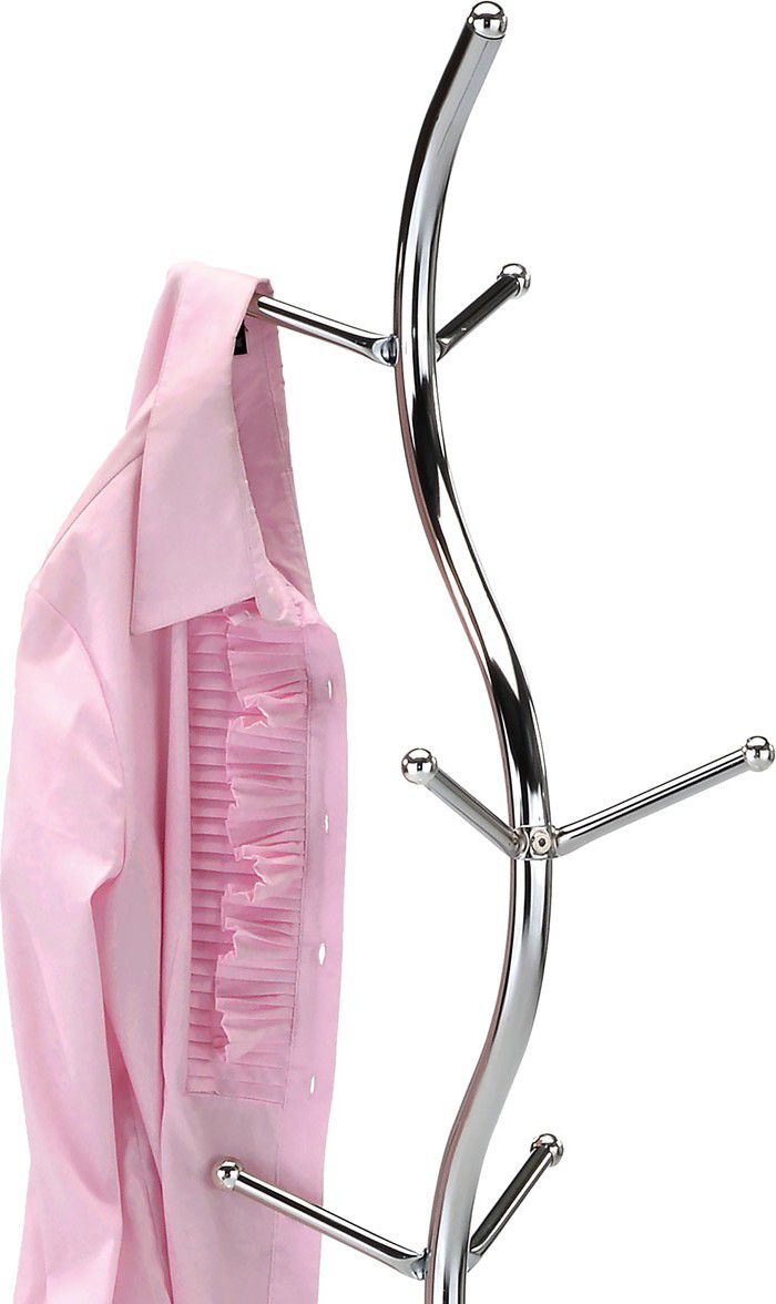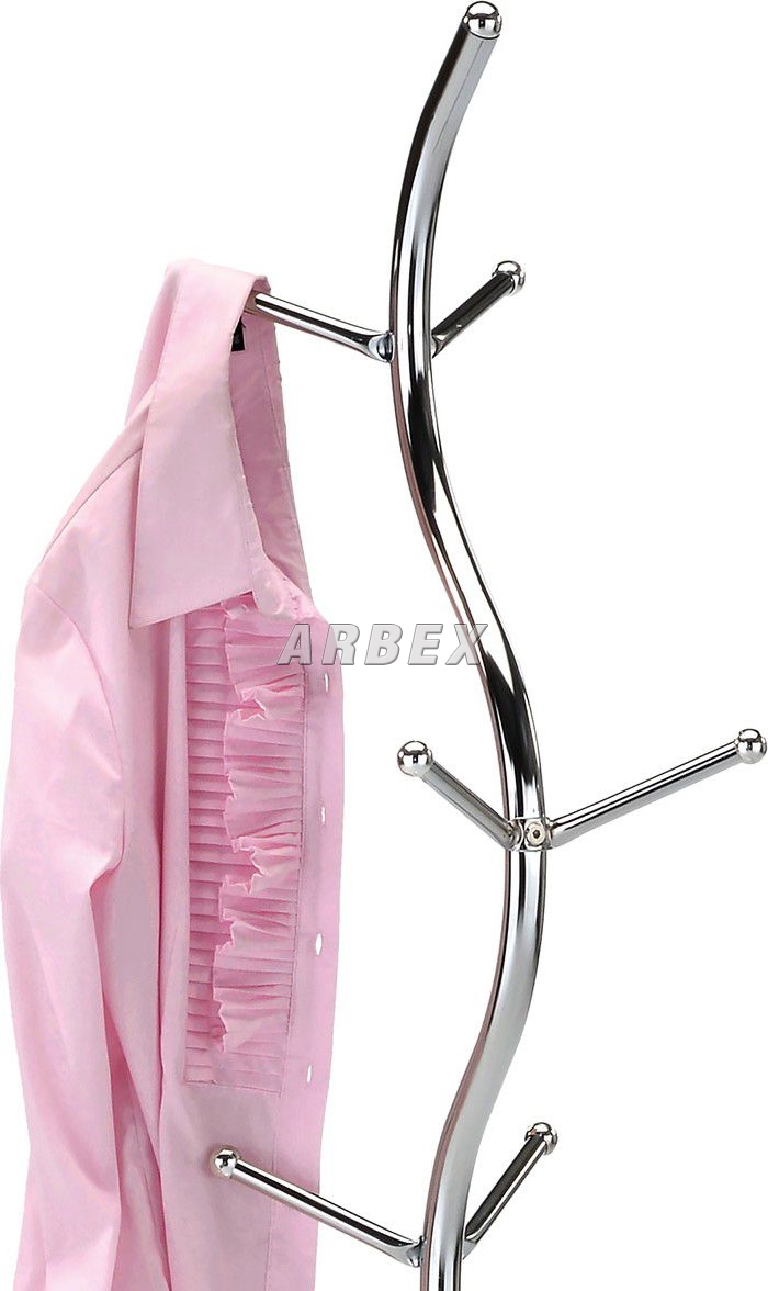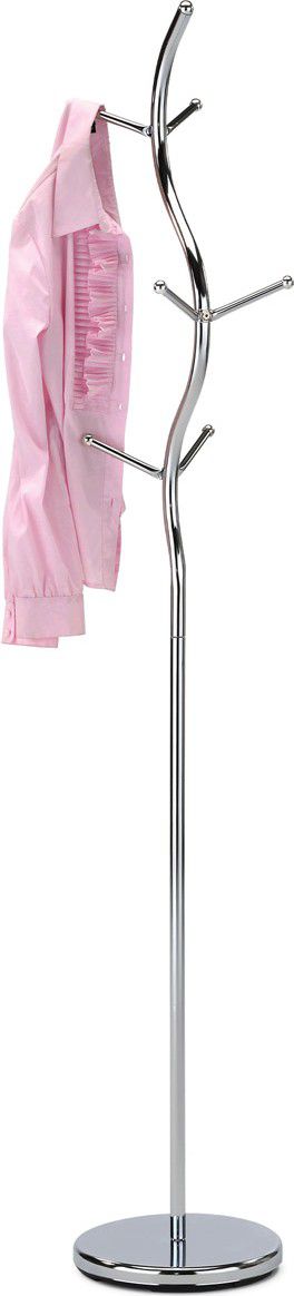 Kovový, volně stojící věšák v minimalistickém designu. Tvarem připomíná stylizovanou větev stromu. Stabilní a lehká konstrukce je z kovových trubek v chromované povrchové úpravě je zakončena kovovou podestou se zátěží. Závěsné háčky jsou ve třech výškových úrovních a jsou zakončeny kulatými plastovými záslepkami v chromu. Dodáván je v demontovaném stavu, celková nosnost je 10 kg rovnoměrně rozprostřené zátěže. Díky své hmotnosti a provedení je lehce přenosný. Jedná se originální doplněk interiéru, v každém si najde zasloužené a funkční místo a uplatnění.