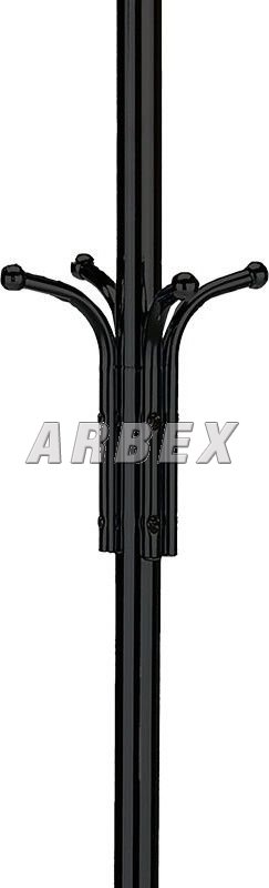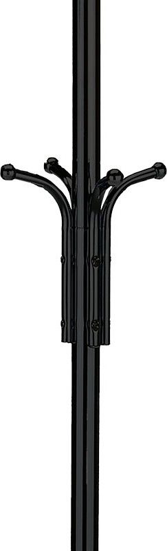 Kovový, volně stojící věšák v retro stylu a se závěsnými háčky ve dvou výškových úrovních. Háčky jsou zakončeny plastovými kulatými záslepkami z černého plastu. Stabilní a lehká konstrukce je z kovových trubek v černém matném práškovém laku a zakončena kovovou podestou se zátěží. Dodáván je v demontovaném stavu. Výška je 182 cm, celková nosnost je do 10 kg rovnoměrně rozprostřené zátěže. Díky své hmotnosti a provedení je lehce přenosný. Jedná se originální doplněk interiéru, v každém si najde zasloužené a funkční místo a uplatnění.