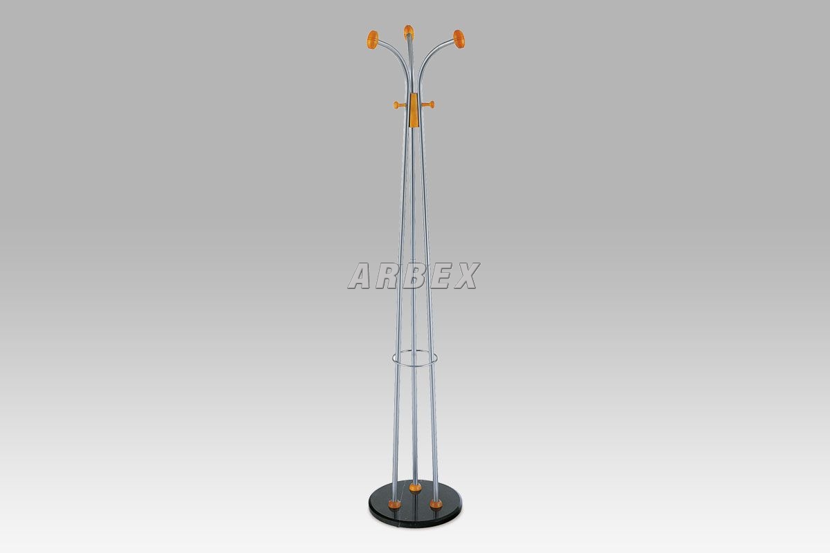 Kovový věšák v provedení stříbrný matný lak s podstavcem z umělého kamene a dřevěnými detaily.