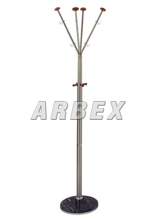 Stojanový kovový věšák, vhodný do předsíně nebo kanceláře. Výška 185 cm Barva koncovek třešeň. Těžká černá základna zajišťuje stabilitu věšáku