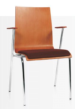 Skořepinová židle. Sedák a opěrák buková překližka s možností moření v několika odstínech, možnost čalouněného panelu sedáku a opěráku. Kostra chromová ocelová.