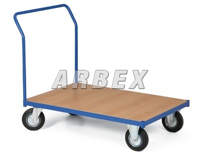 Multifunkční přepravní vozík. Ložná plocha je svařena z ocelových trubek a profilů, díky čemuž je zaručena stabilita. Kovové části jsou nakomaxitovány práškovým lakem RAL 5005. Ložná plocha je vyrobena z laminované dřevotřísky se vzorem světlý buk.  Kola na vozíku jsou od předního světového francouzského výrobce firmy Guitel, díky čemuž je zaručeno min. opotřebení a nosnost i při těžkých provozních podmínkách. Kola jsou vybavena poklicí, která brání namotávání nití a provázků a také zanášení ložiska různými nečistotami, čímž se prodlužuje životnost kola. Kola jsou plná, čímž je zaručen velice tichý chod. Kola jsou o průměru 200 mm. 2 kola jsou pevná a 2 otočná podél vlastní osy. Tyto vozíky díky robustní konstrukci ložné plochy a kvalitním kolům vyhoví i náročným provozům, kde je potřeba manipulovat s nákladem vysoké hmotnosti. Díky kvalitním kolům a kvalitním kovovým částem je zaručena dlouhá životnost.