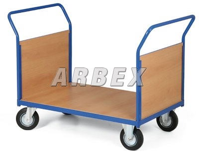 Multifunkční přepravní vozík. Ložná plocha je svařena z ocelových trubek a profilů, díky čemuž je zaručena stabilita. Kovové části jsou nakomaxitovány práškovým lakem RAL 5005. Ložná plocha a dřevěná výplň je vyrobena z laminované dřevotřísky se vzorem světlý buk. Kola na vozíku jsou od předního světového francouzského výrobce firmy Guitel, díky čemuž je zaručeno min. opotřebení a nosnost i při těžkých provozních podmínkách. Kola jsou vybavena poklicí, která brání namotávání nití a provázků a také zanášení ložiska různými nečistotami, čímž se prodlužuje životnost kola. Kola jsou plná, čímž je zaručen velice tichý chod. Kola jsou o průměru 125 mm. 2 kola jsou pevná a 2 otočná podél vlastní osy. Tyto vozíky díky robustní konstrukci ložné plochy a kvalitním kolům vyhoví i náročným provozům, kde je potřeba manipulovat s nákladem vysoké hmotnosti. Díky kvalitním kolům a kvalitním kovovým částem je zaručena dlouhá životnost.