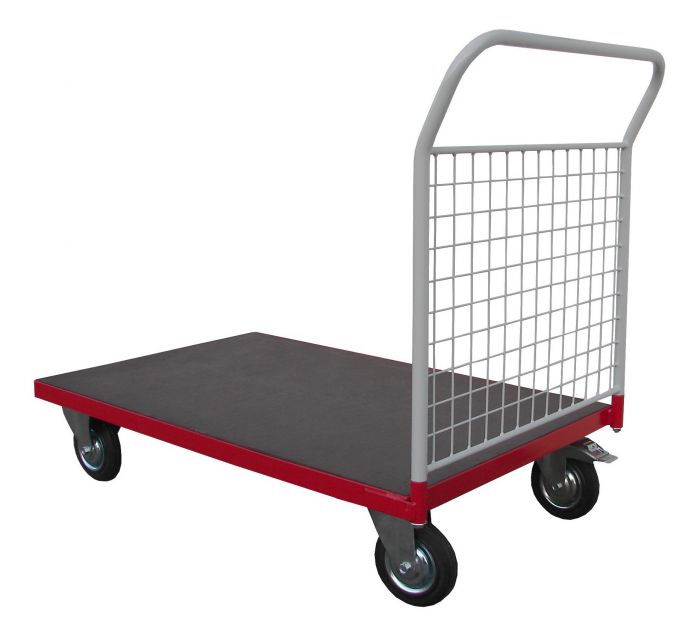 Plošinové vozíky s jedním madlem se sítí, opatřené vodovzdornou deskou o tloušťce 18 mm s protiskluzovou úpravou.