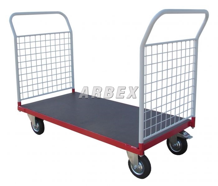 Plošinové vozíky se dvěma madly se sítí, opatřené vodovzdornou deskou o tloušťce 18 mm s protiskluzovou úpravou.
