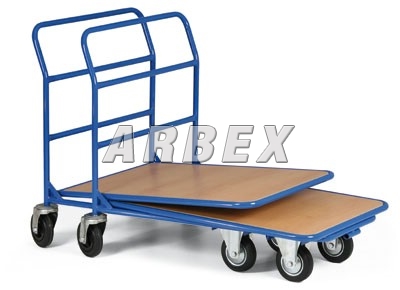 Tato zasouvací plošina je vhodná především do skladů, kde potřebujete využívat větší množství podobných manipulačních prostředků a také potřebujete snížit co nejvíce prostor, který využíváte při jejich uložení. 5 vozíků má odstavnou plochu cca 2 m na délku, přičemž standardní vozíky zaberou cca 5 m na délku, tudíž uspoříte cca 60 % místa na jejich uložení. Konstrukce je svařovaná a je z ocelových trubek a profilů. Ložná plocha je vyrobena z laminované dřevotřísky se vzorem světlý buk. Kola jsou černá plnopryžová s jehlovými ložisky, díky čemuž je zaručen tichý chod. Kola na vozíku jsou od předního světového francouzského výrobce firmy Guitel, díky čemuž je zaručeno min. opotřebení a nosnost i při těžkých provozních podmínkách. Kola jsou vybavena poklicí, která brání namotávání nití a provázků a také zanášení ložiska různými nečistotami, čímž se prodlužuje životnost kola. Kola jsou plná, čímž je zaručen velice tichý chod. Kola jsou o průměru 160 mm a 2 jsou pevná a 2 otočná podle vlastní osy. Kola lze doplnit na vyžádání dvojčinnou brzdou proti pojezdu i proti otáčení kolem svislé osy. Dle přání našeho zákazníka lze zajistit taktéž jiný odstín RAL dle předchozí domluvy. Kovové části jsou nakomaxitovány práškovým lakem RAL 5005.
