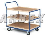 Dílenský policový vozík vhodný především na přepravu různého druhu zboží či drobnějšího materiálu do skladů, výrobních hal a provozoven. Konstrukce vozíku je svařena z ocelových profilů. Nosnost vozíku je 200 (300, 400) kg. Povrchová úprava je provedena práškovým vypalovacím lakem odstínu RAL 5005 - modrá. Police je z laminované dřevotřísky ohraněné překližkovou hranou zabraňující spadnutí převáženého materiálu mimo ložnou plochu. Kola jsou vybavena poklicí, která brání namotávání nití a provázků a také zanášení ložiska různými nečistotami, čímž se prodlužuje životnost kola. Kola jsou plná, čímž je zaručen velice tichý chod. Kola jsou o průměru 125 (160, 200) mm a 2 jsou pevná a 2 otočná podél vlastní osy.