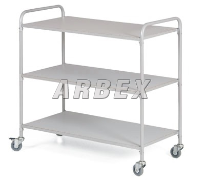 Policové vozíky mají rovněž široké využití. Všechna kola jsou otočná kolem svislé osy, 2 kola jsou vybavena brzdou, obruče jsou z šedé nešpinivé praže, disky jsou vybaveny poklicí zabraňující namotávání nečistot na osu kola. Kola jsou o průměru 75 mm. Konstrukce je svařovaná z ocelových trubek a profilů. Ložná plocha je vyrobena z laminované dřevotřísky v šedém odstínu. Kovové části jsou lakovány práškovým lakem v odstínu 7040 RAL.