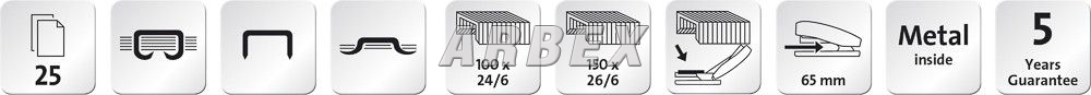 Užitečná sešívačka pro domácí kancelář. Celokovová sešívačka s částečným horním plastovým krytem. Plnění shora s jednoduchým vedením sponek. Otočná matrice pro trvalé nebo volné sešití. Volné sešití umožňuje krátkodobé spojení dokumentů - sponky se dají jednoduše a rychle odstranit.