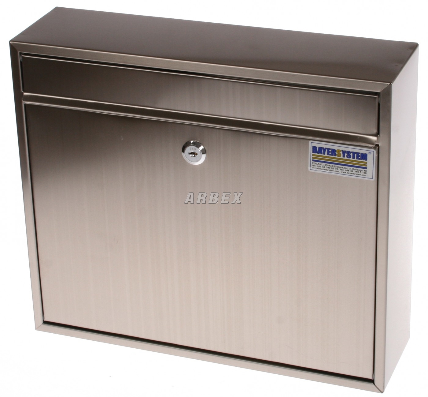 Nerezová poštovní schránka, povrch pokryt bezbarvým ochranným lakem.