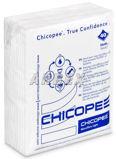 Jednorázové utěrky Chicopee Microfibre Light jsou určeny na povrchové čištění a krátkodobé použití. Nezanechávají šmouhy a z povrchu odstraňují 99% bakterií.