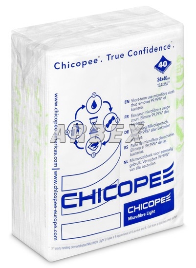 Jednorázové utěrky Chicopee Microfibre Light jsou určeny na povrchové čištění a krátkodobé použití. Nezanechávají šmouhy a z povrchu odstraňují 99% bakterií.
